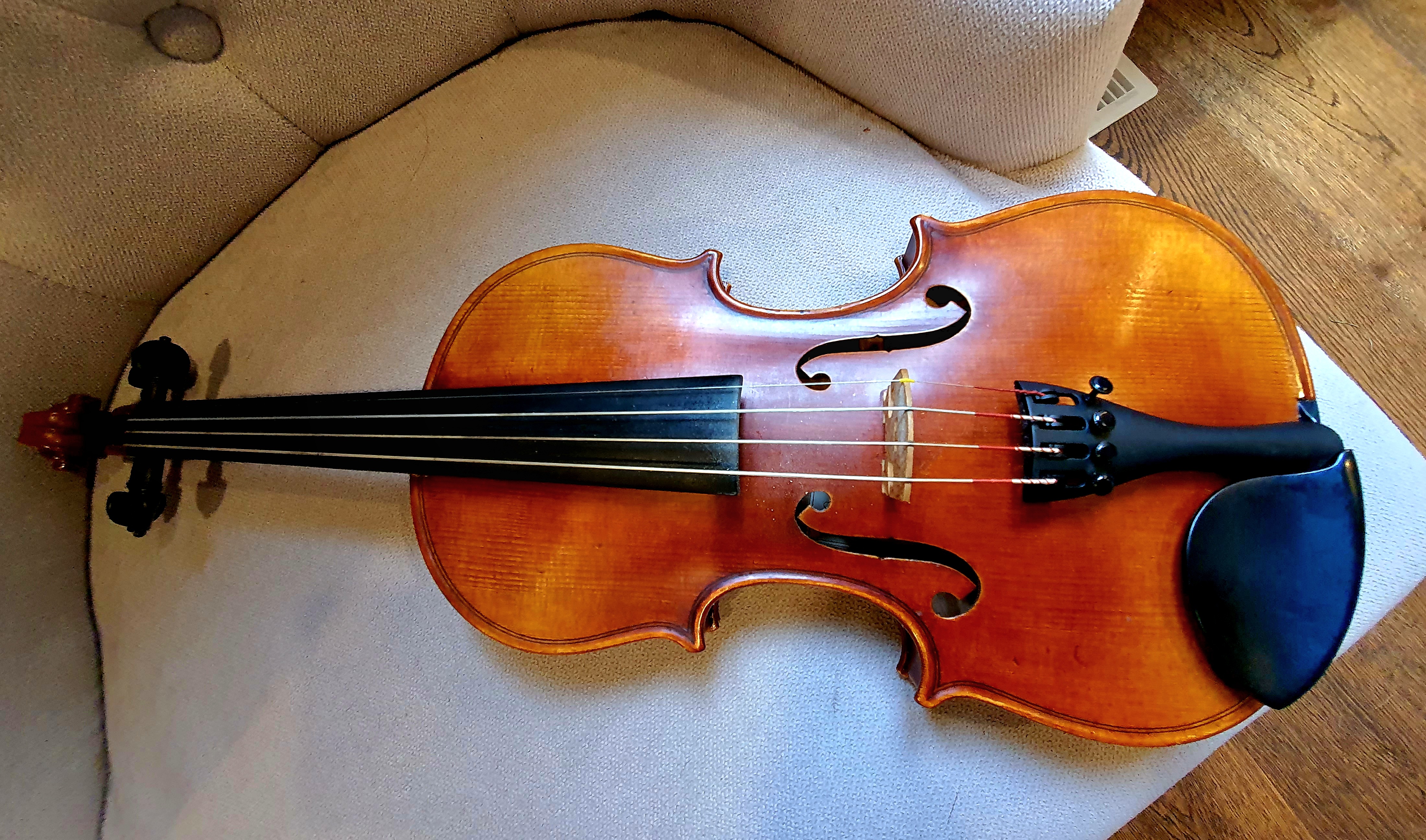Purchased from Whitehorse music close to 2K. Suits more advanced students. Huge sound and beautifully made (one piece at the back). Strings were used for less than 3 months. Bring your bow and try it.